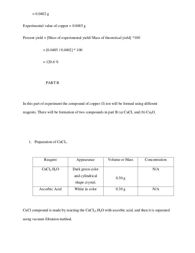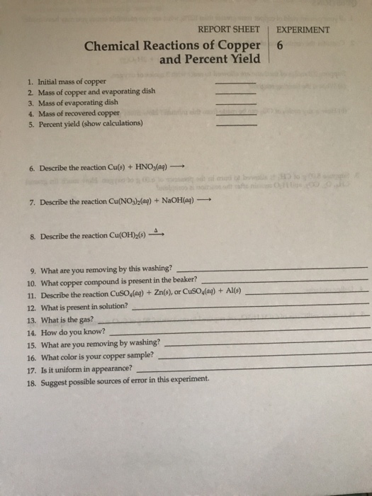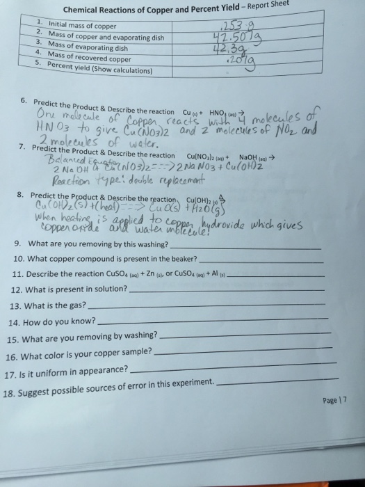 Chemical Reactions Of Copper And Percent Yield Lab Report Answers